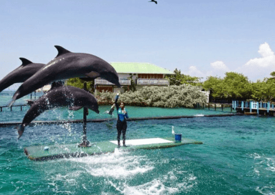 Actividad 2 – Tour Islas del Rosario + Oceanario + Playa tranquila, esta actividad se realiza todo el día (desde las 07:00am) y tiene una duración de 9 horas aproximadamente, la salida será desde el hospedaje o punto de encuentro establecido (dependiendo de la zona), incluye traslado en bus hasta baru, transporte en lancha rápida por las islas del rosario (con parada opcional para entrar al oceanario o hacer snorkel), por último disfrutarán las aguas cristalinas en playa tranquila con coctel de bienvenida y almuerzo típico, hasta la hora de regreso a la ciudad.